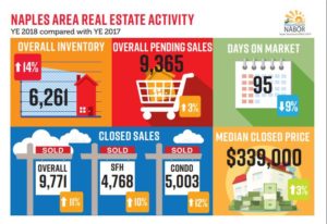 The Naples area housing market ended 2018 with impressive annual activity statistics in all areas of the residential real estate market including an 11 percent increase in total closed sales and a 14 percent increase in inventory compared to 2017. Sales of homes over $1 million continued to drive the market in 2018, especially in the condominium market where closed sales of condominiums over $1 million increased 37 percent! According to the Year End 2018 Market Report released by the Naples Area Board of REALTORS® (NABOR®), which tracks home listings and sales within Collier County, inventory at the end of 2018 was the highest on record in six years.